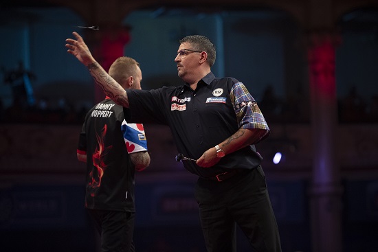 The first round continues on Sunday with a double session at the Winter Gardens, which includes two-time champion Michael van Gerwen up against Steve Beaton and 2007 winner James Wade taking on 2018 semi-finalist Jeffrey de Zwaan.