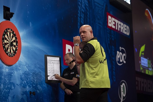 A fifth leg in a row and a further break of throw then put Van den Bergh ahead for the first time, with his opponent beginning to miss chances to win legs.