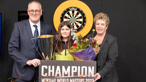 The 18-year-old became just the fourth person in history to win both the youth and senior World Masters titles with a resounding 6-0 win over Spain's Almudena Fajardo. Greaves threw six 140s and recorded finishes of 108 and 121 in the final, recording an 80.52 average in the process.