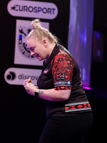 Coming off a win over close friend Lorraine Hyde 2-0 in the first round, Kewish raced out of the blocks against Hedman, winning the first two legs in 15 darts with finishes of 120 and 80. The third was much scrappier, with both players missing a slew of doubles, but Kewish got over the line on double one.