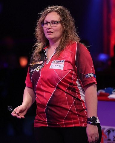 Greaves produced another 18-darter to win the first set and then found herself 2-0 up once more in the third thanks to a great 109 out. Ihasz fought back again though and this time won the set, albeit surviving three match darts to do so.
