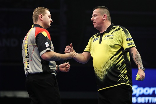 The pair exchanged four straight holds in set three to create a thrilling finale, but it was Van den Bergh who booked his spot in the second round, courtesy of a fine 13-dart hold in the decider.