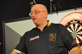 Did it already happen to you that you didn't recognize a well-known darts player when you emit him in his street wear or in jump suit? That is at least what happened to me when in my accommodation on the morning of the second day a no longer young, tall and slender man appeared in the breakfast room wearing a dark blue jumpsuit--- I was sure I did knew him...only after some pondering I realised it was Mario Vandenbogaerde whom I had watch on the day before in several matches.