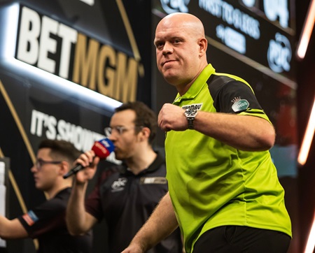 The world's top two players will go head-to-head on Night Five in Exeter, as Van Gerwen bids to become the first player to celebrate four straight victories since the inception of the current eight-player knockout format.